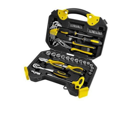 39 részes szerszám készlet tartalma: 3/8' col racsni és dugókulcsok 8 mm - 21 mm (Cr-V minőség). Szerves részét képezi a készletnek, a kombinált fogó, imbuszkulcs szett, behajtófejek szárak és 2x csavarhúzó, valamint egy kalapács (súlya 200 g). A szerszám szett egy tömör műanyag hordtáskában található.