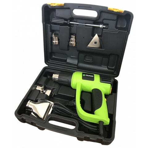 Elektromos hőlégfúvó. Előnyök: 2 fokozatú hőmérséklet állítás ( I: 50 - 450 °C, II: 60 - 600 °C) 2 fokozatú légkeverés állítás (I. 250 l/min, II. 500 l/min) 5 adatpter Műanyag koffer