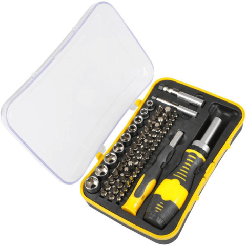Kifinomult 4 mm-es és 6 mm-es bitkészlet csavarhúzókkal Cr-V anyagból, ami nagyobb anyagszilárdságot, így lassabb elhasználódást biztosít. A készlet bitek széles választékát tartalmazza, amelyeket finom órásmunkára, de akár normál méretű csavarokkal történő munkára is használni lehet. Az ergonomikus nyelű és racsnis nagy csavarhúzó alkalmas tartalékbitek tárolására is arra az esetre, ha egy kisszekrény összeállításához elég néhány odaillő bit, és n