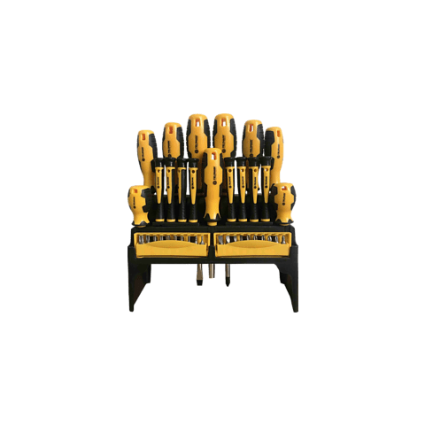 Tartalom: 4 Phillips csavarhúzó 4 lapos csavarhúzó 8 kis csavarhúzó Bitfej tartó Bitek : SL 4,5,6, PH 1,2,3, PZ 0,1,2,3, T 20,25,30,40, H 4,5,7