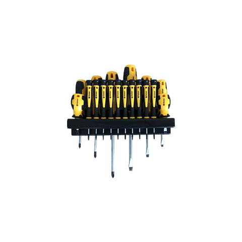 Tartalom: Csavarhúzók 8 db - Philips, hasított Csavarhúzók 10 darabos forgó fogantyú val Fali tartó Cr-V minőség