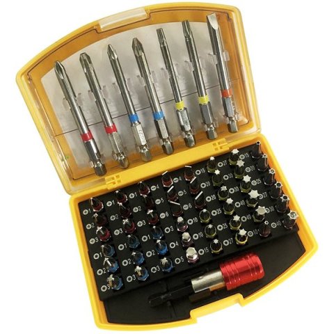 Csavarhúzó készlet - bites imbusz, lapos, csillag, torx A precíz gyártmányú, rendkívül szilárd és tartós FIELDMANN FDS 9003-56R csavarhúzó készletet kínáljuk bitekkel. A készletben megtalálhatók a leggyakrabban használt bitek és egyéb toldalékok az o