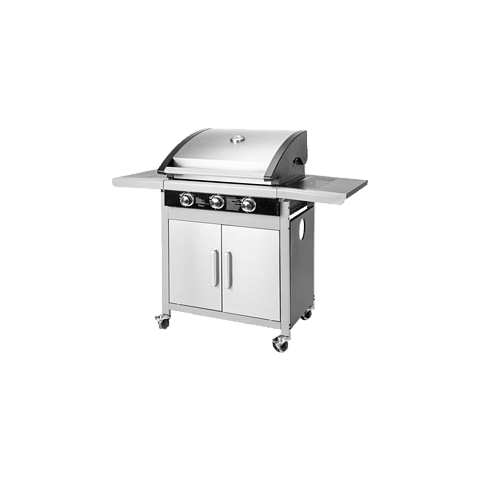 Grillsütő mérete: 122 x 57 x 112 cm Grillezési magasság: 86 cm 3x égős kialakítás Integrált gyújtási rendszer Öntöttvas grillrács Rozsdamentes acél fogantyú Rozsdamentes acél kezelőpanel Beépített hőmérő Mozgatást segítő kerekek