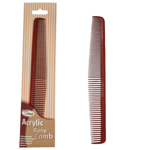 Az Acrylic Bone Comb kollekciót kézzel készítették, speciális akril anyagból. Ez a speciális anyag ellenáll a túlzott hőnek, nem vetemedik vagy reped. Minden fog, fogantyú varratmentes, így lehetővé teszi a zökkenőmentes bontást és a formázást. A fésűk a