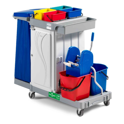 1 kép Filmop Alpha 6103 takarítókocsi 4x4L + 2x15L vödörrel, zsáktartóval, zárható szekrénnyel