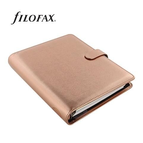 1 kép FILOFAX Kalendárium, gyűrűs, betétlapokkal, A5 méret, FILOFAX, "Saffiano Metallic", rózsaarany
