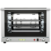 Főbb erősségek Professzionális kialakítás szálcsiszolt rozsdamentes acélból, 2 ventilátor a gyors és egyenletes sütéshez. Dupla üvegezésű ajtó a hőszigetelés és a biztonság érdekében. Belső világítás a főzés vizuális ellenőrzéséhez. Mechanikus időzítő 120 perc. Ideális csemegeüzletekbe, forgónyársütőkbe, bisztrókba és kisebb éttermekbe. Alapfelszereltség 3 GN1/1 tálca. Manuális párásítás. Állítható lábak.Teljesítmény: 2,9 k