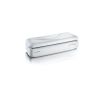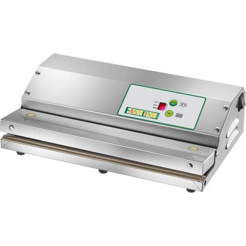 Inox kivitel, száraz szivattyús, digitális fóliatasztatúrás vezérlés, manuális és automata ciklus, szimpla záróvarrat, érdesített felületű tasakkal használható. Hegesztőél hossza: 400 mm Pumpa kapacitás: 1,2 m3/óra max. 80% hatásfokkal Tápfeszültség: 0,27 kW/230V-1N~ Mérete: 420x260x130 mm Súly: 8 Kg