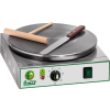 Rozsdamentes acél szerkezet, csúszásmentes öntöttvas sütőlappal, állítható magasságú talpak, termoszstatikus hőmérséklet szabályzó 0-300 °C. Sütőlap átmérője: 400 mm Sütési időzítő: 60-180 másodperc Teljesítmény: 2,75 kW/230V-1N~ Mérete: 400x470x120 mm