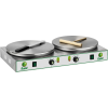 Rozsdamentes acél szerkezet, 2 db csúszásmentes öntöttvas sütőlappal, állítható magasságú talpak, termoszstatikus hőmérséklet szabályzó 0-300 °C. Sütőlap átmérője: 2x350 mm Sütési időzítő: 60-180 másodperc Teljesítmény: 4,8 kW/400V-3N~ (2x2 kW) Mérete: 710x370x120 mm