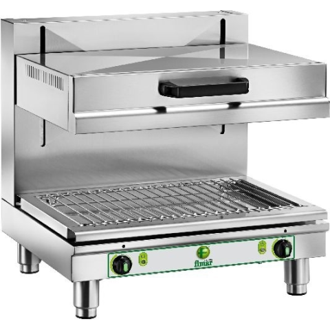 Liftes sütőfelület, kivehető és tisztítható cseppfogó tálca, folyamatos teljesítmény szabályozás. Rácsméret: 530x325 mm. Munka magasság: 110-270 mm. Teljesítmény: 4,7 kW/400V-3N~. Mérete: 600x560x620 mm.