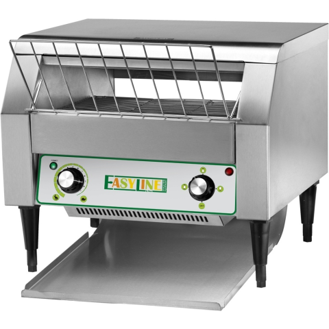 Szalagos toaster, rozsdamentes acél kialakítás kívül-belül, kvarclámpás melegítés, választható 3 fűtési mód. Sütési idő: 90-340 másodperc. Szalag méret: 350mm. Kapacitás: 120-350. db/óra. Teljesítmény: 2,45 kW/230V-1N~ Mérete: 480x560x430 mm. Súly: 27 Kg.