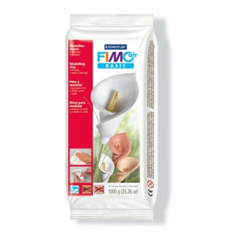 Gyurma, 1000 g, levegőre száradó, FIMO Air Basic, fehér (FM81010) - használatra kész, szobahőmérsékleten száradó gyurma - cellulóz alapú, 95%-ban természetes anyagból - száradási ideje a készített tárgy méretétől függően néhány nap - száradás után fúrh
