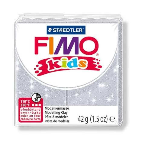 Gyurma, 42 g, égethető, FIMO "Kids", glitteres ezüst