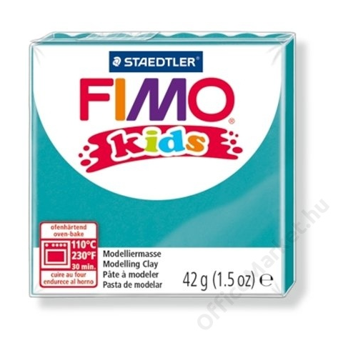 Gyurma, 42 g, égethető, FIMO Kids, türkiz (FM803039) - kiégethető gyurma, 42g - puhítsa, amíg felveszi a kívánt formát - nem játék, nem ehető - bútorral, kárpittal stb. ne érintkezzen - max. 30 perc égetési idő 110°C-on, alufóliára, sütőpapírra helyezv