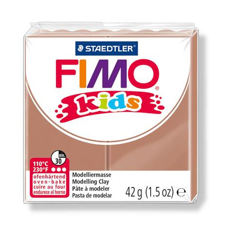 Gyurma, 42 g, égethető, FIMO Kids, világosbarna - kiégethető gyurma, 42 g - puhítsa, amíg felveszi a kívánt formát - nem játék, nem ehető - bútorral, kárpittal stb. ne érintkezzen - max. 30 perc égetési idő 110°C-on, alufóliára, sütőpapírra helyezve