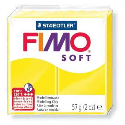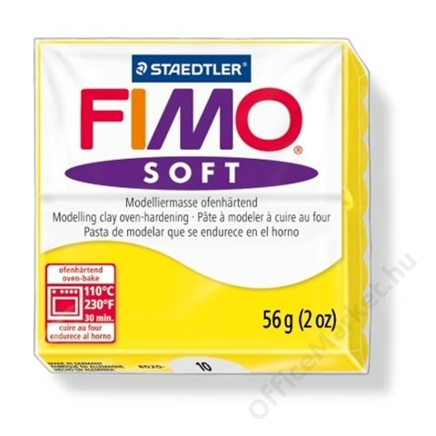 Gyurma, 57 g, égethető, FIMO Soft, citromsárga (FM802010) - kiégethető gyurma, 56 gramm - speciális alkalmazáshoz, technikákhoz - könnyen keverhető, FIMO Soft és Classic gyurmákkal is - puhítsa, amíg felveszi a kívánt formát - 8 éven felülieknek aj