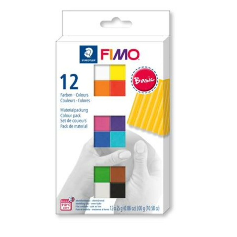 Gyurma, készlet, 12x25 g, égethető, FIMO Soft Basic, 12 különböző szín (FM8023C121) - kiégethető gyurma, 12x25 gramm - prémium minőség a finom megmunkálhatóság érdekében - kiválóan megtartja a formát - 8 adagra elosztva a könnyű formázás és keverés
