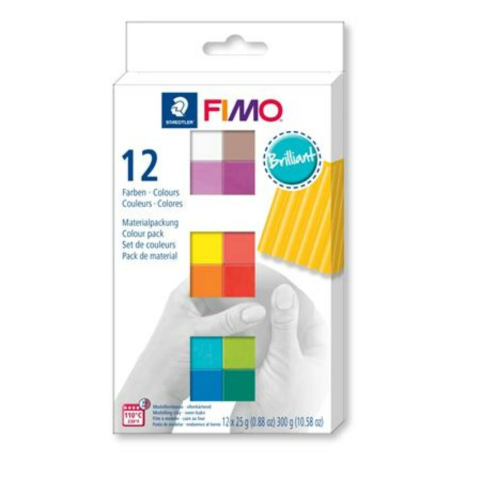 Gyurma, készlet, 12x25 g, égethető, FIMO Soft Brillant, 12 különböző szín (FM8023C122) - kiégethető gyurma, 12x25 gramm - prémium minőség a finom megmunkálhatóság érdekében - kiválóan megtartja a formát - 8 adagra elosztva a könnyű formázás és kever