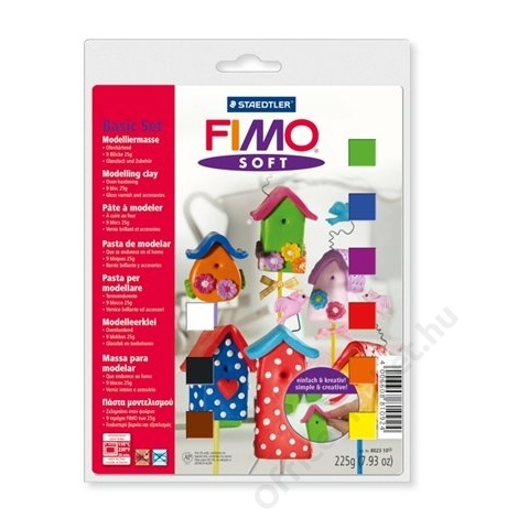 Gyurma készlet, 9x25 g, égethető, FIMO Soft Basic, 9 különböző szín (FM802310) - kiégethető gyurma készlet, 9x25 g - tiszta színek magas pigmenttartalommal, keverhető - nem játék, nem mikrózható - nyílt láng, forró kés vagy drót használata tilos -