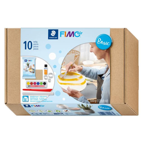 A Fimo Air Basic levegőn száradó gyurmakészlet ideális egyedi tárgyak, ajándékok készítésére, fazekasság és kemencében való égetés nélkül. A készletben lévő fehér színű FIMO Air Basic levegőn száradó gyurma könnyen formázható, száradás után festhető, ragasztható. A formák kialakítását nem csak kézzel végezhetjük, hanem a készletben lévő 1 cm átmérőjű nyújtórúd vagy mintázókés segítségével, illetve a 3 különböző méretű (1,5-2-3 cm