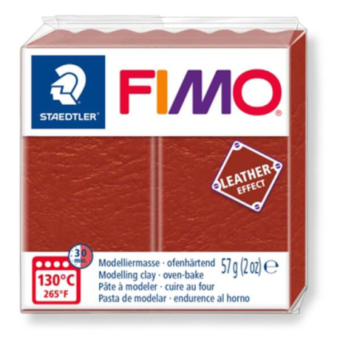 A Fimo Soft és Effect típusokhoz hasonlóan 57 grammos kiszerelésben kapható FIMO Leather Effect bőrhatású gyurma remek kiegészítője a sorozatnak. A könnyű, puha állagú gyurma 12 gyönyörű színben érhető el, a már megszokott, könnyen bontható csomagolásban. A Leather Effect gyurma felülete égetés (130 fokon 30 perc alatt) után bőrhatásúvá válik; ha vékony gyurmalapot készítünk a termékből, akkor az anyag sütés után hajtható, hímezhető és varrható, ak