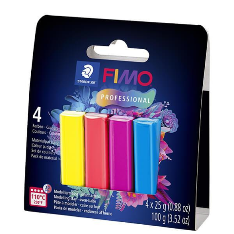 A Fimo Professional Colour Pack kiégethető gyurmakészletek ideálisak azoknak, akik most ismerkednek a süthető gyurmával, és olyan gyurmafigurát, ékszert vagy dekorációt szeretnének készíteni, amihez több színre van szükségük. A 4 db-os készlet tökéletes ajándék születés- vagy névnapi, gyereknapi, karácsonyi alkalmakra.