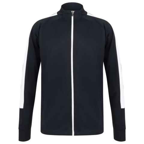 ADULT'S KNITTED TRACKSUIT TOP 100% poliészter interlockKontrasztos színű betétek az ujjak külső oldalánKözépen kontrasztos színű elülső cipzárCipzáras oldalzsebekTölcsérnyak1x1 bordázott mandzsettákFélautomatán záródó cipzárkocsi minden cipzáron XXSXSS
