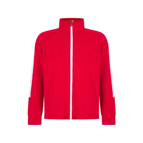 Finden + Hales gyerek tréning felső, 100% poliészter interlockKontrasztos színű betétek az ujj külső oldalánKontrasztos színű elülső cipzár középenCipzáras oldalzsebekTölcsérnyak1x1 bordázott mandzsettákFélautomatán záródó cipzárkocsi minden cipzáron 5