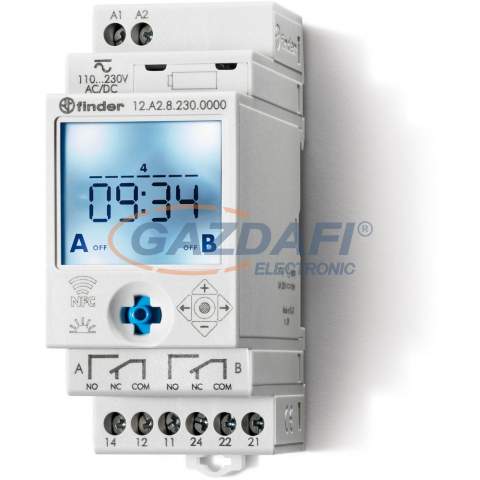 1 kép Finder 12.A2.8.230.0000 Asztronómiai kapcsolóóra 2 váltóérintkező.
