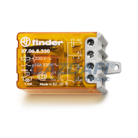 FINDER főkatalógus FINDER 270682300000 általános leírása:A relé egy olyan elektromechanikus vagy elektronikus eszköz, amely egy kisebb áramkörrel vezérel egy nagyobb teljesítményű áramkört. Az épületvillamosságban számos feladatot lát el, segítve a bizton