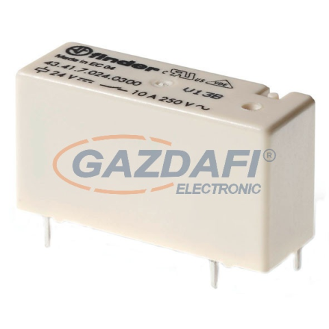 FINDER főkatalógus FINDER 434170120300 általános leírása:A relé egy olyan elektromechanikus vagy elektronikus eszköz, amely egy kisebb áramkörrel vezérel egy nagyobb teljesítményű áramkört. Az épületvillamosságban számos feladatot lát el, segítve a bizton
