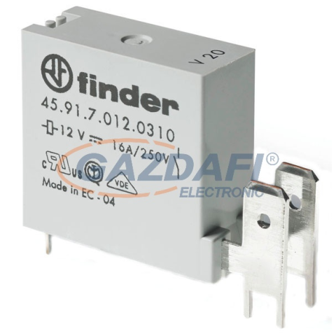 FINDER főkatalógus FINDER 459170240310 általános leírása:A relé egy olyan elektromechanikus vagy elektronikus eszköz, amely egy kisebb áramkörrel vezérel egy nagyobb teljesítményű áramkört. Az épületvillamosságban számos feladatot lát el, segítve a bizton