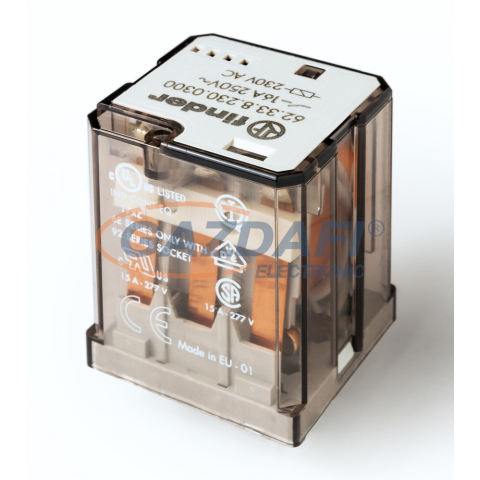 FINDER főkatalógus FINDER 623382304300 általános leírása:A relé egy olyan elektromechanikus vagy elektronikus eszköz, amely egy kisebb áramkörrel vezérel egy nagyobb teljesítményű áramkört. Az épületvillamosságban számos feladatot lát el, segítve a bizton