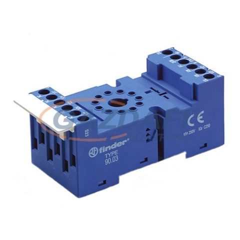 1 kép Finder 90.03 Szerelősínre pattintható csavaros csatlakozású foglalat húzókengyellel, kék, 8 pin