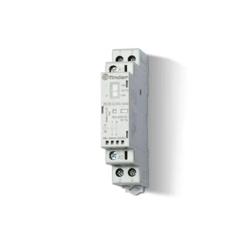 22.32.0.xxx.1xx0-ás installációs mágneskapcsolók 25 A, 2 érintkező, AgNi érintkezőanyag, csavaros csatlakozás. Alkalmazhatók ohmikus, mérsékelten induktív és motorterhelésekhez. Főbb jellemzők: 17,5 mm széles A nyitott záróérintkezők távolsága ≥ 3 mm A