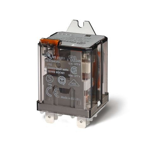 62.82-es típus 2 CO (váltóérintkező), 16 A Faston 250, rögzítőfül a relé hátoldalán Érintkezők jellemzői: Érintkezők kialakítása: 2 CO Tartós határáram/max. bekapcs. áram: 16/30A Névleges fesz./ max. kapcsolási fesz.: 250/400V AC Max. terhelhetőség AC