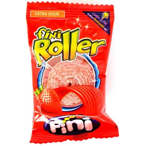 Fini Roller savanyú eper ízesítésű gumicukorszalag .