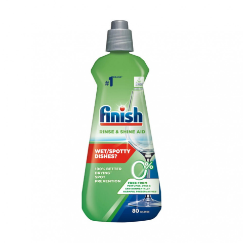 A Finish 0% gépi öblítőszer biztosítja a mosogatógép száradási teljesítményét. Az alábbi anyagoktól mentes: aromák, színezékek és a környezetre káros tartósítószerek. Finish Green öko mosogatógép öblítő 400 ml A Finish 0% gépi öblítőszer biztosítja a