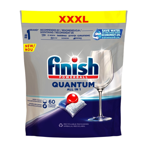 Finish Quantum kapszula a tiszta és csillogó edényekért már az első használattól kezdve, minden alkalommal, még a legnehezebb vízviszonyok között is. Kompakt, három-kamrás formulája hatékonyan távoltja el a legmakacsabb ételmaradékokat az edények előöblítése nélkül is, valamint további védelmet nyújt az üvegkorrózió ellen. A Finish Quantum újrazárható zacskóban kapható, így nincs szükség az egyes kapszu
