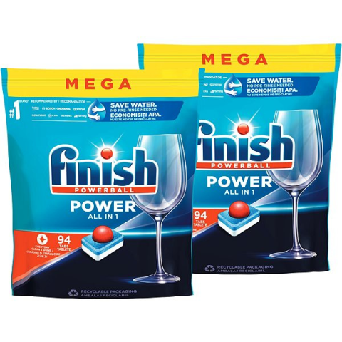 Mosogatógép tabletta - multifunkciós, kemény kapszula, All in 1, 188 db a csomagban A Finish Power All in 1 a mindennapi használatra beáztatja és felpuhítja a rászáradt ételmaradékokat. Tiszta edények már az első mosásnál. A Finish márka elkötelezett a vízkészletek védelme mellett, e