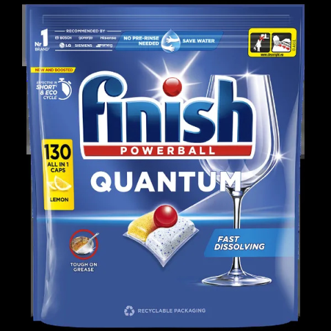 1 kép Finish Powerball Quantum All in 1 mosogatógép-kapszula, Lemon 130db