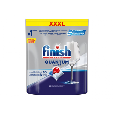 Finish Quantum kapszula a tiszta és csillogó edényekért már az első használattól kezdve, minden alkalommal, még a legnehezebb vízviszonyok között is. Kompakt, három-kamrás formulája hatékonyan távoltja el a legmakacsabb ételmaradékokat az edények előöblítése nélkül is, valamint további védelmet nyújt az üvegkorrózió ellen. A Finish Quantum újrazárható zacskóban kapható, így nincs szükség az egyes kapszulák kicsomagolására. Ne öblítse el az edényeit