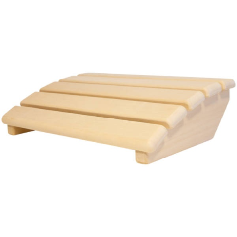 Lekerekített, abachi fából készült fejtámla, mely lehetővé teszi a kényelmes fekvést a szaunában.