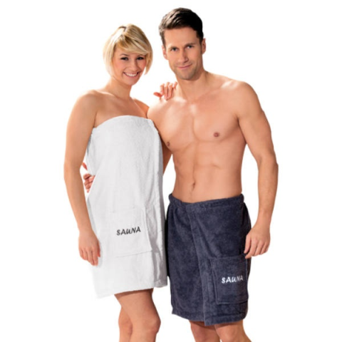 Kiváló minőségű frottír szauna-kilt 100%-os, 400 g / m² -es sűrűségű pamutból, nagyon puha és nedvszívó hatású.