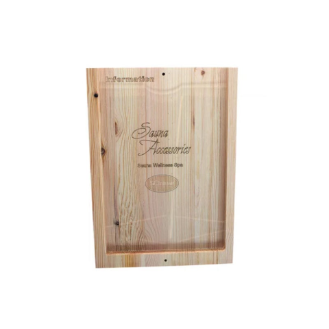 Az illatinformációs tábla masszív fenyőfából készül és átlátszó plexiüveg tartja az illatinformációs táblát, amely minden információt megad Önnek és szaunavendégeinek a felöntéskor alkalmazott illatról.
