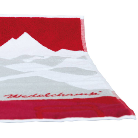 Szauna légterelő törölköző a Német Szaunaszövetség ajánlásával, piros/fehér/szürke