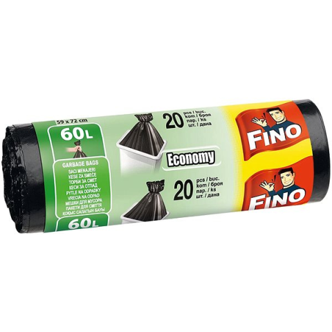 Szemeteszsák 60 l - háztartási hulladék szelektív gyűjtéséhez, anyaga műanyag, méretei 72 × 59 cm (ma × szé), anyag vastagsága 13 µ, 20 db a csomagban Kiváló minőségű szemeteszsákot keresel? Akkor megtaláltad. A FINO Economy 60 l térfogatú szemeteszsák tartós anyagból készül, így nem kell aggódnod, hogy széthasad A fekete színű szemeteszsákot a kert