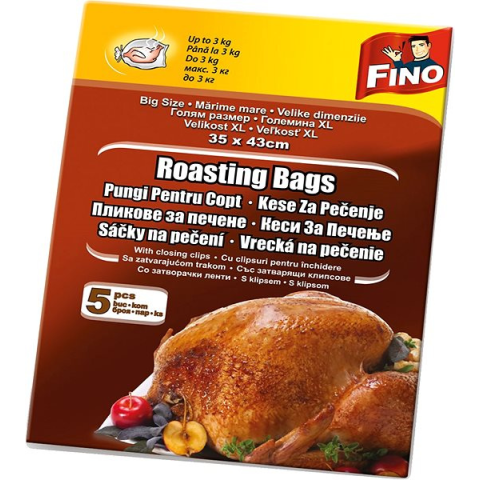 Műanyag tasak - egyszer használatos kivitel, sütőbe betehető, kapcsos záródás, méretei 43 × 35 cm (ma × szé), 5 darab a csomagban A FINO sütőzacskók lehetővé teszik, hogy akár 3 kilogrammos húst, halat, zöldséget vagy akár süteményt is elkészíts a sütőben. A zacskók kiválóan megőrzik az ételek levét, vitaminjait, illatát és tápé