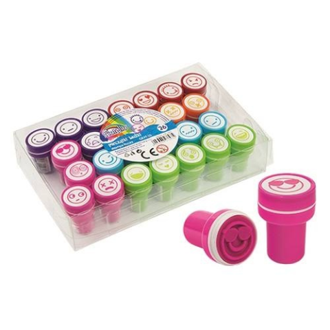 Nyomda, önfestékező, vegyes érzelmeket kifejező motívumokkal, 26 db egy készletben, a nyomda test színével megegyező színes lenyomat..